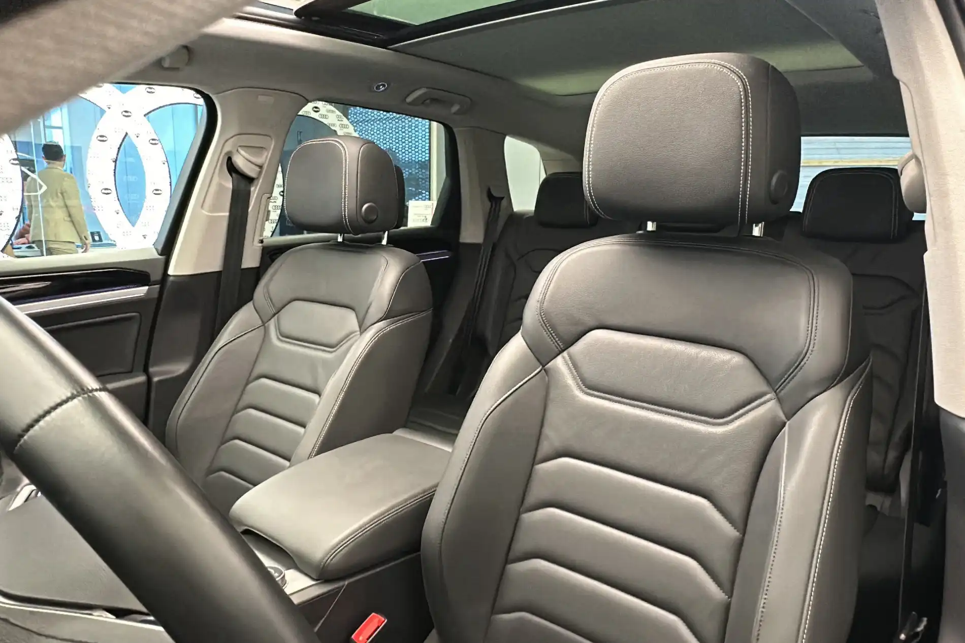 Le Volkswagen Touareg 3.0 TSI eHybrid 381 ch Tiptronic 8 4Motion Elegance est un grand SUV hybride rechargeable (PHEV) combinant puissance, confort haut de gamme et technologies avancées. Son groupe motopropulseur associe un moteur essence V6 3.0 TSI à un moteur électrique, délivrant une puissance cumulée de 381 chevaux.